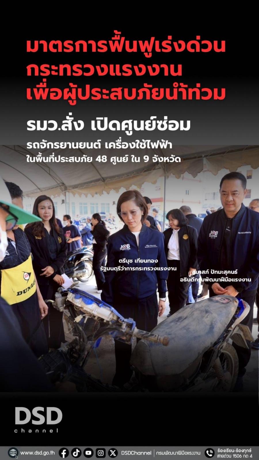 “ตรีนุช” สั่งการกรมพัฒน์ เร่งจัดตั้งศูนย์ซ่อม ช่วยเหลือน้ำท่วม 48 ศูนย์ใน 9 จังหวัดภาคใต้