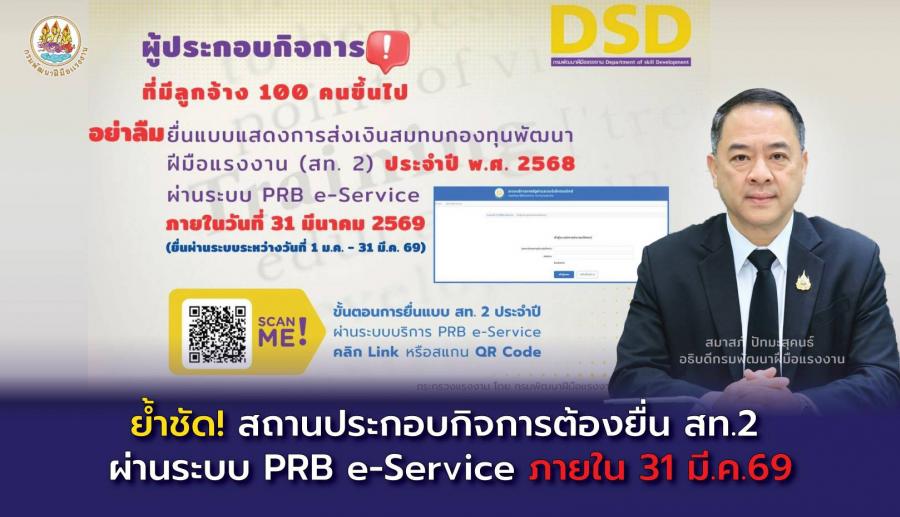 ย้ำชัด! สถานประกอบกิจการต้องยื่น สท.2 ผ่านระบบ PRB e-Service ภายใน 31 มี.ค. 69