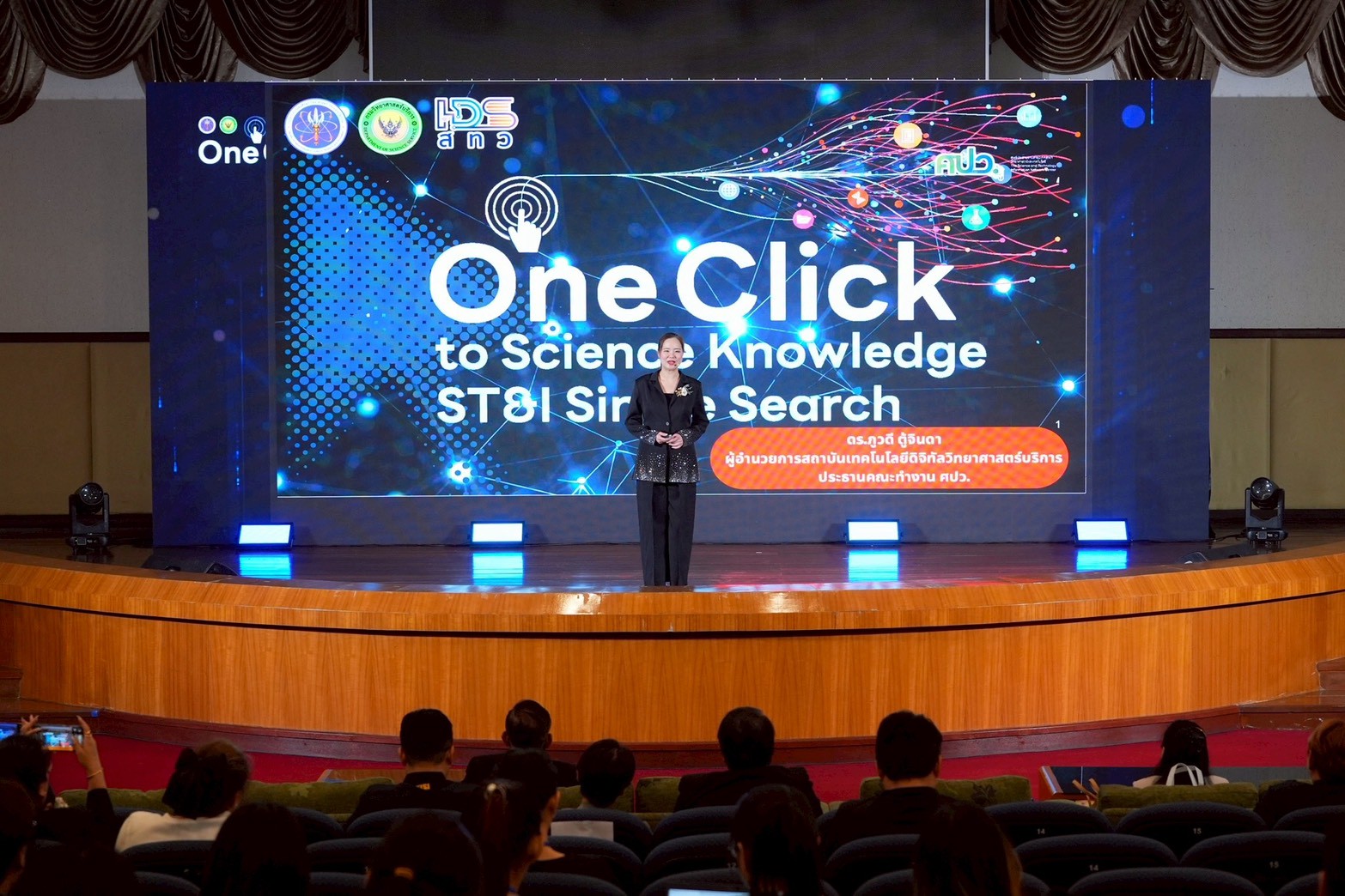 การสัมมนาฯ ในครั้งนี้ ได้รับเกียรติจาก ดร.พจมาน ท่าจีน รองอธิบดี รักษาราชแทนอธิบดีกรมวิทยาศาสตร์บริการ เป็นประธานในพิธีเปิด และกล่าวถึงทิศทางการพัฒนาระบบสารสนเทศด้านวิทยาศาสตร์ของประเทศว่า “ในยุคที่ข้อมูลคือขุมพลังสำคัญของการพัฒนา ประเทศไทยจำเป็นต้องมีระบบสารสนเทศที่ทำให้ข้อมูล สารสนเทศ และองค์ความรู้ที่มีอยู่ตามแหล่งต่าง ๆ ถูกรวบรวมอย่างเป็นระบบ ไม่กระจัดกระจาย แต่เชื่อมโยงถึงกันได้อย่างมีประสิทธิภาพ การพัฒนาแพลตฟอร์มการสืบค้นแบบ Single Search ภายใต้แนวคิด AI และ Open Science จะช่วยให้การเข้าถึงข้อมูล สารสนเทศ ตลอดจนองค์ความรู้ด้านวิทยาศาสตร์และเทคโนโลยีเป็นเรื่องง่าย รวดเร็ว และเกิดประโยชน์สูงสุดต่อกลุ่มเป้าหมายต่าง ๆ ไม่ว่าจะเป็น การศึกษา ค้นคว้า การวิจัย และพัฒนา การกำหนดนโยบาย และการพัฒนาประเทศ”