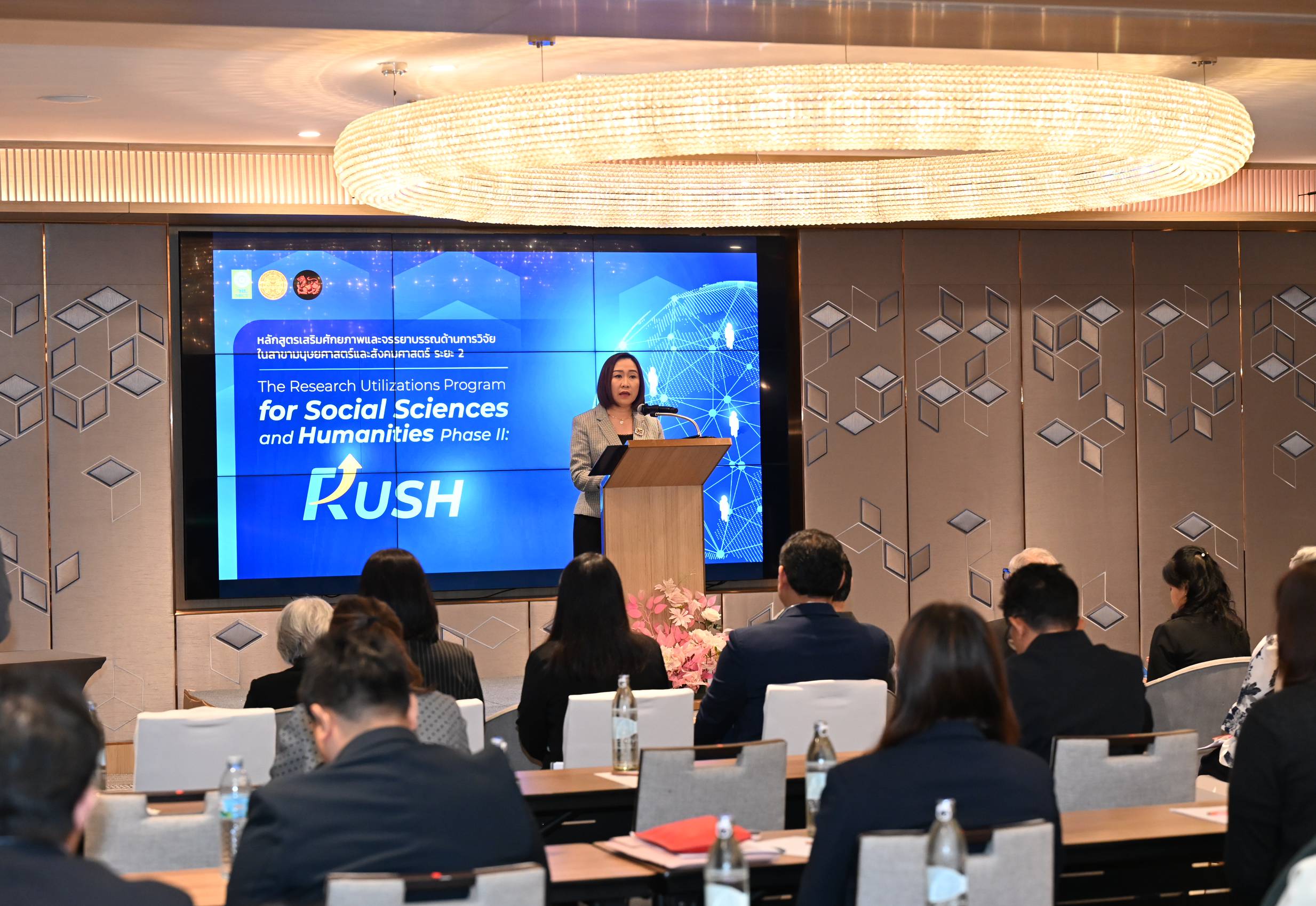 รองศาสตราจารย์ ดร.สุนิดา อรุณพิพัฒน์ จากคณะรัฐศาสตร์ มหาวิทยาลัยธรรมศาสตร์ ในฐานะหัวหน้าโครงการฯ ได้กล่าวถึงวัตถุประสงค์ของการอบรมหลักสูตร RUSH ว่า “โครงการนี้ถือเป็นความริเริ่มอันดีของ วช. ที่ต้องการเห็นบุคลากรในสาขามนุษยศาสตร์และสังคมศาสตร์มีเครือข่ายที่เข้มแข็งและได้รับการเสริมศักยภาพอย่างต่อเนื่อง ซึ่งความสำเร็จนี้ได้เริ่มต้นขึ้นตั้งแต่ปีแรก สำหรับในระยะที่ 2 เราได้ยกระดับการดำเนินงานให้เข้มข้นยิ่งขึ้น โดยมุ่งเป้าไปที่การนำงานวิจัยไปใช้ประโยชน์ได้จริง ท้ายที่สุดนี้ จากความสำเร็จในระยะแรกที่นักวิจัยสามารถยื่นขอรับทุนสนับสนุนในลักษณะงานวิจัยเพื่อการนำไปใช้ประโยชน์ได้ตามเป้าหมาย ทำให้เรามั่นใจว่าเครือข่ายที่เรามุ่งมั่นสร้างสรรค์ขึ้นในปีนี้ ซึ่งเต็มไปด้วยความพยายาม ความหวัง และความห่วงใย จะนำพาทุกท่านไปสู่การนำงานวิจัยไปใช้ประโยชน์ได้อย่างแท้จริง ตลอดจนร่วมกันยกระดับการพัฒนาประเทศไปสู่อีกขั้นหนึ่ง”