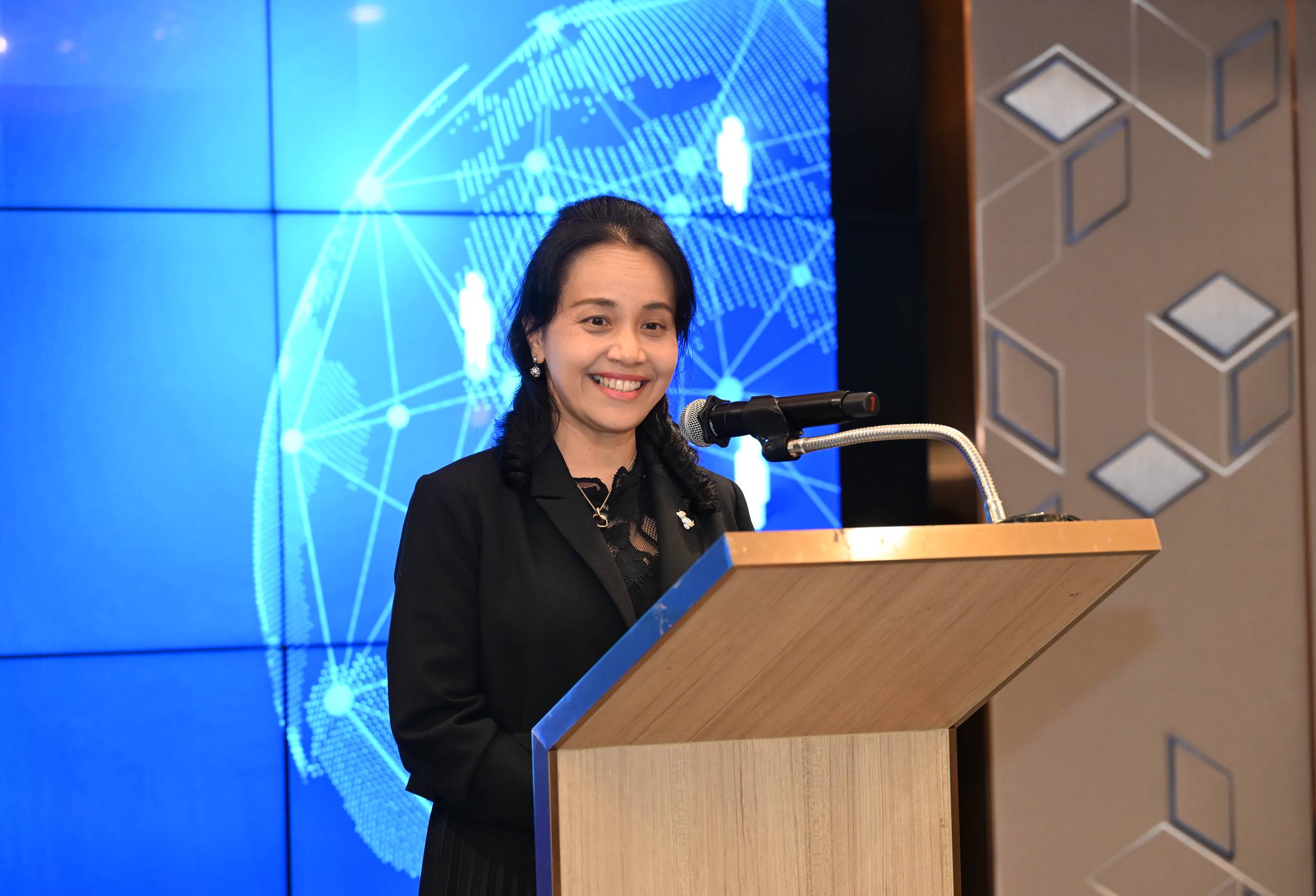 นอกจากนี้ คุณแก้วเกศร์ ถาวรพันธ์ รองเลขาธิการวุฒิสภา ได้ร่วมกล่าวแสดงความยินดี โดยระบุว่า “การอบรมในครั้งนี้ถือเป็นก้าวย่างสำคัญที่จะช่วยขับเคลื่อนให้งานวิจัยสามารถนำไปใช้ประโยชน์ได้จริง และเป็นเป้าหมายในการร่วมกันผลักดันการพัฒนาประเทศในมิติต่าง ๆ ได้อย่างเป็นรูปธรรม หลายคนมักตั้งคำถามว่า งานวิจัยที่ดีนั้นอยู่ที่ไหน อาจจะอยู่ในห้องสมุดหรืออยู่บนหิ้ง ความท้าทายที่สำคัญคือ เราจะนำงานวิจัยที่ดีเหล่านั้นลงจากหิ้งมาใช้ให้เกิดประโยชน์อย่างเป็นรูปธรรมได้อย่างไร ดิฉันขอชื่นชมหลักสูตรนี้ที่มีความมุ่งมั่นในการนำงานวิจัยมาใช้ประโยชน์ ไม่ว่าจะเป็นด้านนโยบายสาธารณะ ด้านสังคมและชุมชน หรือด้านพาณิชย์ก็ตาม สำหรับสำนักงานเลขาธิการวุฒิสภา ซึ่งเป็นหน่วยงานที่มีภารกิจหลักในการสนับสนุนงานของวุฒิสภา ทั้งด้านการประชุม ด้านกฎหมาย และด้านวิชาการ เราได้เล็งเห็นถึงความสำคัญของการนำผลงานวิจัยและองค์ความรู้ต่าง ๆ มาใช้ประโยชน์ จึงได้สนับสนุนให้มีการลงนามในบันทึกข้อตกลงความร่วมมือ (MOU) กับหน่วยงานต่าง ๆ อย่างต่อเนื่อง เพื่อนำผลงานทางวิชาการและงานวิจัยมาประยุกต์ใช้ในกระบวนการนิติบัญญัติต่อไป”