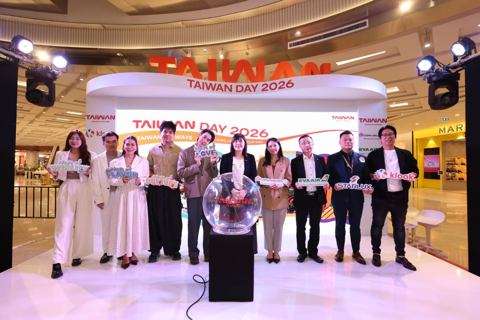 สำนักงานการท่องเที่ยวไต้หวันจัดงานแถลงข่าวและกิจกรรมสัมผัสประสบการณ์สุดพิเศษ “Taiwan Day 2026” อย่างยิ่ง ใหญ่เมื่อวันที่ 13 มีนาคมณศูนย์การค้าเซ็นทรัลพาร์คภายใต้ธีม “Taiwan 100 Ways” พร้อมเชิญอินฟลูเอนเซอร์ชื่อดัง ของไทย 4 รายผู้เป็นตัวแทนในแต่ละธีมการท่องเที่ยวได้แก่ไปกันนะ : Pai Gun Na ตัวแทน Waves of Flavor กอล์ฟ มาเยือนตัวแทน Waves of Culture Natcha NCS ตัวแทน Waves of Vitality และ Koendanai ตัวแทน Waves of Love เพื่อประกาศเริ่มแผนการตลาดสำหรับตลาดไทยประจำปี 2569 อย่างเต็มรูปแบบภายในงานคับคั่งไปด้วยสื่อมวลชน พันธมิตรในอุตสาหกรรมท่องเที่ยว และประชาชนทั่วไปเข้าร่วมเป็นสักขีพยานในการ
