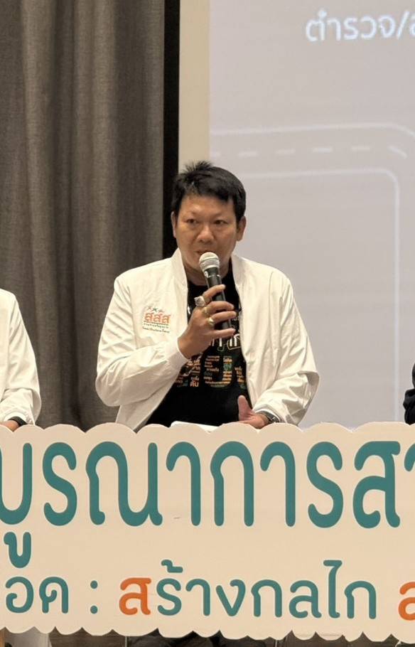 ดร.นิสา รัตนดิลก ณ ภูเก็ต ผู้อำนวยการสำนักสนับสนุนสุขภาวะชุมชน (สำนัก 3) สำนักงานกองทุนสนับสนุนการสร้างเสริมสุขภาพ (สสส.) อธิบายถึงแนวทางการจัดการความปลอดภัยทางถนนโดยชุมชนท้องถิ่น ผ่านกรอบแนวคิด “3 เหลี่ยมเขยื้อนภูเขา” ว่า การขับเคลื่อนจำเป็นต้องบูรณาการพลังจากสามส่วนสำคัญ ได้แก่ การกำหนดนโยบาย องค์ความรู้จากหน่วยงานสนับสนุน และการลงมือปฏิบัติของภาคีเครือข่ายในพื้นที่ให้ทำงานประสานกันอย่างเป็นระบบ โดยใช้กลไกศูนย์ปฏิบัติการความปลอดภัยทางถนนองค์กรปกครองส่วนท้องถิ่น (ศปถ.อปท.) เป็นแกนกลางในการเชื่อมโยงและบูรณาการงบประมาณ แผนงาน และความร่วมมือจากภาคส่วนต่าง ๆ ควบคู่กับการพัฒนาระบบข้อมูลเพื่อเฝ้าระวังและติดตามความเสี่ยง ซึ่งจะช่วยให้พื้นที่สามารถวิเคราะห์สถานการณ์และจัดการปัญหาความปลอดภัยทางถนนได้อย่างแม่นยำ