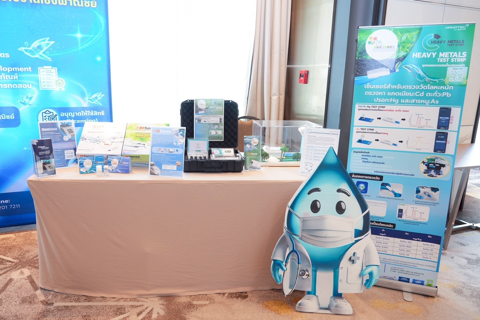 ด้าน ดร.วีรกัญญา มณีประกรณ์ ผู้อำนวยการกลุ่มวิจัยวัสดุตอบสนองและเซ็นเซอร์ระดับนาโน ศูนย์นาโนเทคโนโลยีแห่งชาติ กล่าวว่า นาโนเทคได้พัฒนา ชุดตรวจวัดสารเคมีในน้ำ ChemSense ซึ่งเป็นชุดตรวจโลหะและสารเคมีปนเปื้อนในน้ำ อาทิ แมงกานีส ทองแดง เหล็ก และฟลูออไรด์ เพื่อแก้ปัญหาข้อจำกัดของการตรวจสอบคุณภาพน้ำที่มักใช้เวลานานและมีต้นทุนสูง โดยชุดตรวจดังกล่าวสามารถใช้งานได้ง่าย เพียงเก็บตัวอย่างน้ำ เติมน้ำยาทดสอบ และรอผลประมาณ 1–3 นาที ก็สามารถทราบผลได้