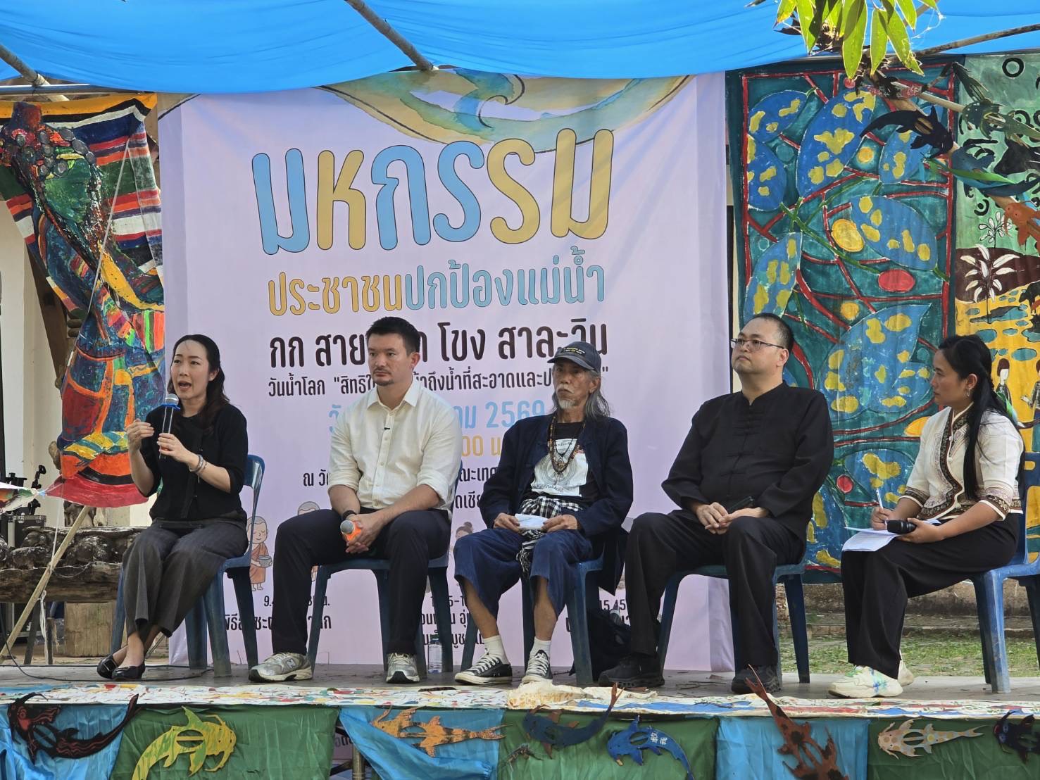 เชียงราย 22 มีนาคม 2569 – สมาคมแม่น้ำเพื่อชีวิต ร่วมกับชุมชนบ้านใหม่และบ้านฝั่งหมิ่น จัดกิจกรรม “มหกรรมประชาชนปกป้องแม่น้ำกก สาย รวก โขง สาละวิน” เนื่องในวันน้ำโลก ที่วัดฝั่งหมิ่นและสวนสาธารณะริมน้ำกก อำเภอเมือง จังหวัดเชียงราย เพื่อสะท้อนปัญหาการปนเปื้อนสารพิษในแม่น้ำข้ามพรมแดนจากกิจกรรมเหมืองแร่ในประเทศเพื่อนบ้านที่ยืดเยื้อมานานกว่า 2 ปี และส่งผลกระทบต่อประชาชนผู้ใช้น้ำกว่า 70000 ครัวเรือน พร้อมยื่นข้อเสนอเชิงนโยบายต่อสมาชิกสภาผู้แทนราษฎรและสมาชิกวุฒิสภาที่เข้าร่วมงาน