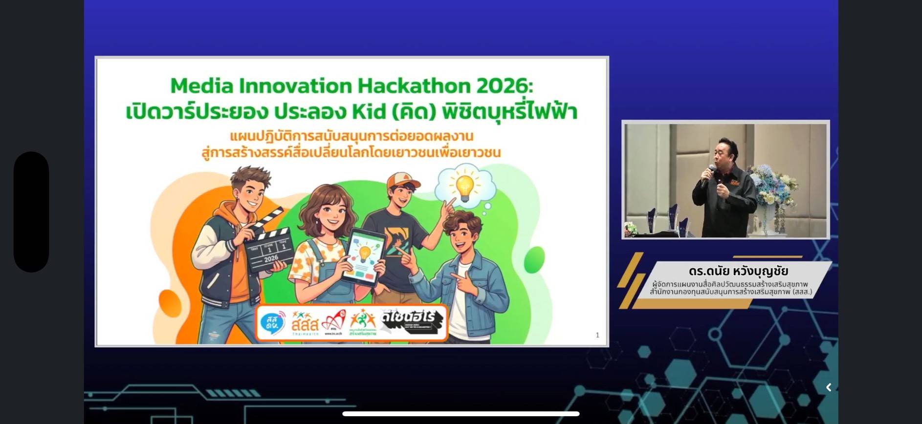 Media Innovation Hackathon 2026 (Season 3) “ เปิดวาร์ประยอง ประลอง Kid (คิด) พิชิตบุหรี่ไฟฟ้า ” เยาวชนไทยโชว์พลังครีเอทีฟ ปั้นสื่อสู้ภัยบุหรี่ไฟฟ้า ชิงรางวัลรวม 150000 บาท !
