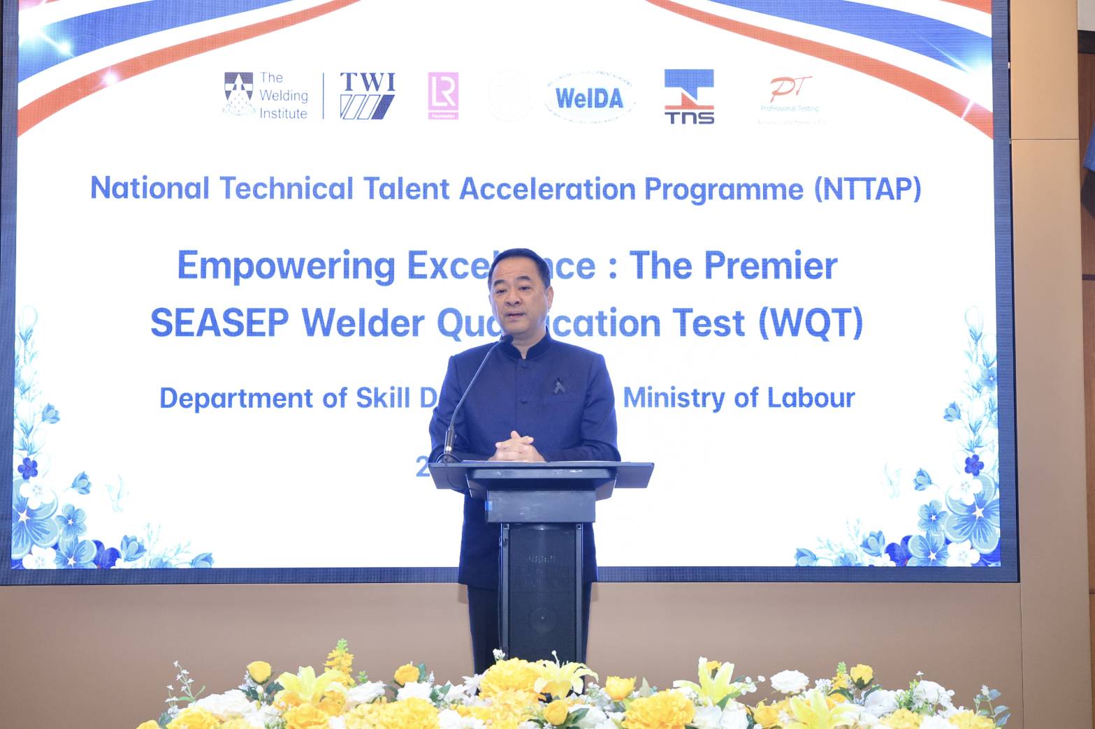 นายสมาสภ์ ปัทมะสุคนธ์ อธิบดีกรมพัฒนาฝีมือแรงงาน เปิดเผยว่า กรมพัฒนาฝีมือแรงงานเดินหน้ายกระดับศักยภาพแรงงานไทยอย่างต่อเนื่อง ภายใต้บันทึกความเข้าใจ (MOU) ร่วมกับบริษัท ทีดับบลิวไอ เทรนนิ่ง แอนด์ เซอร์วิส จำกัด (TWI) เพื่อพัฒนาทักษะแรงงานสาขาเทคโนโลยีการเชื่อมและการตรวจสอบให้ได้มาตรฐานสากล รองรับการเติบโตของอุตสาหกรรมเป้าหมาย (New S-Curve) และโครงการโครงสร้างพื้นฐานขนาดใหญ่ของประเทศ ทั้งนี้ ได้มอบหมายให้ สถาบันพัฒนาบุคลากรการเชื่อม (WelDA) ของกรมพัฒนาฝีมือแรงงาน ดำเนินการฝึกอบรม ซึ่งเป็นการจำลองสถานการณ์ปฏิบัติงานจริงตามมาตรฐานสากล ผู้เข้าอบรมจะได้รับการฝึกทักษะการเชื่อมในท่า 6G ด้วยกระบวนการ SMAW เป็นท่าที่มีความยาก และใช้ประเมินทักษะขั้นสูง พร้อมเข้ารับการทดสอบโดยผู้เชี่ยวชาญจาก TWI (TWI Welding Examiner) ผ่านกระบวนการตรวจสอบทั้งทางสายตาและการทดสอบทางกล ตามมาตรฐาน ASME Section IX