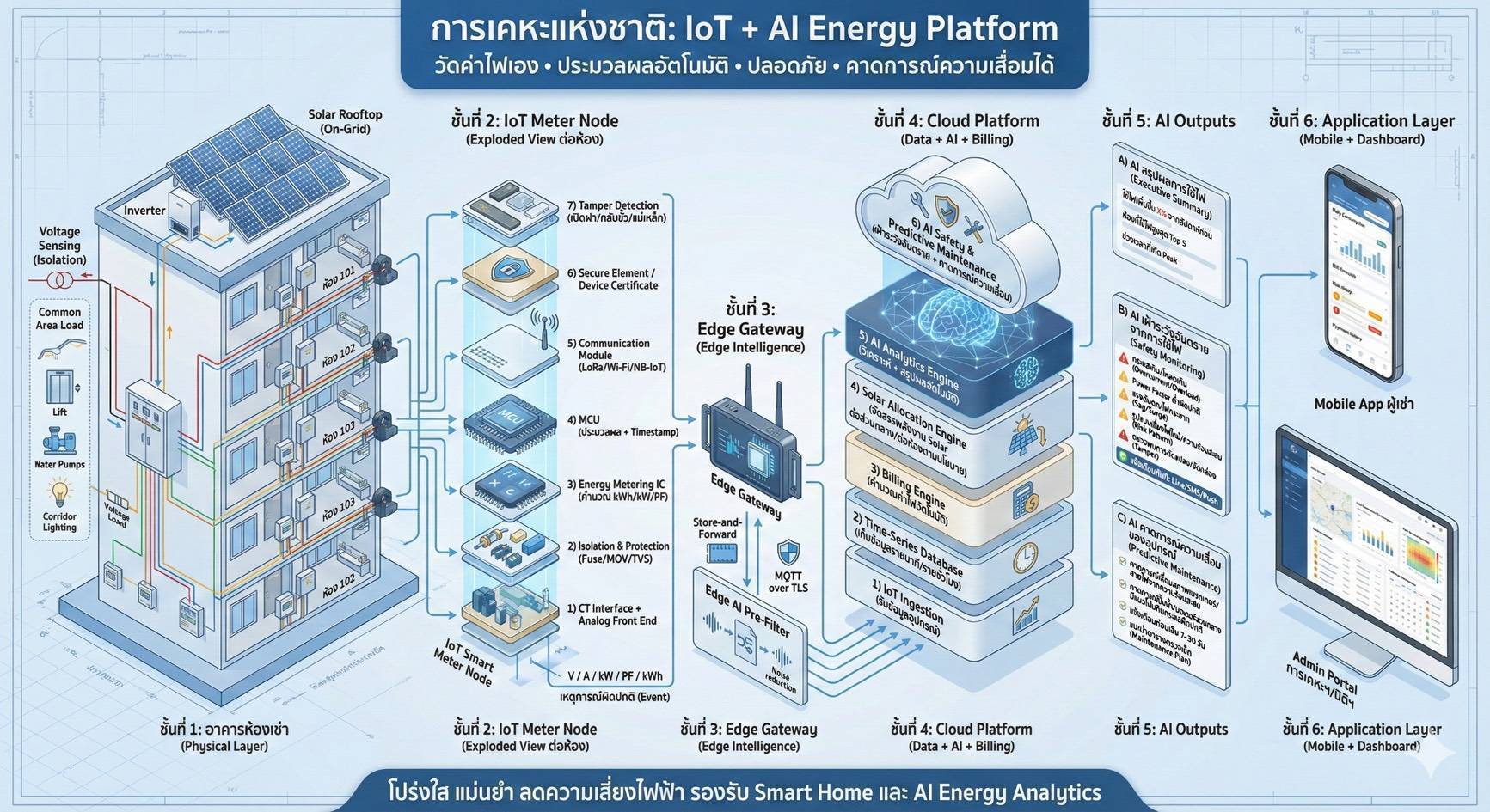 อีกทั้ง โครงการยังนำเทคโนโลยี Digital Twin มาประยุกต์ใช้ในการบริหารจัดการพลังงานแบบอัจฉริยะ เพื่อเพิ่มประสิทธิภาพการควบคุมและกระจายการใช้ไฟฟ้า โดยเฉพาะการบริหารพลังงานส่วนเกิน (Energy Sharing) ให้เกิดประโยชน์สูงสุด เช่น รองรับการชาร์จรถยนต์ไฟฟ้าของผู้อยู่อาศัย ช่วยแก้ข้อจำกัดด้านพื้นที่และยกระดับความสะดวกสบายในชุมชน