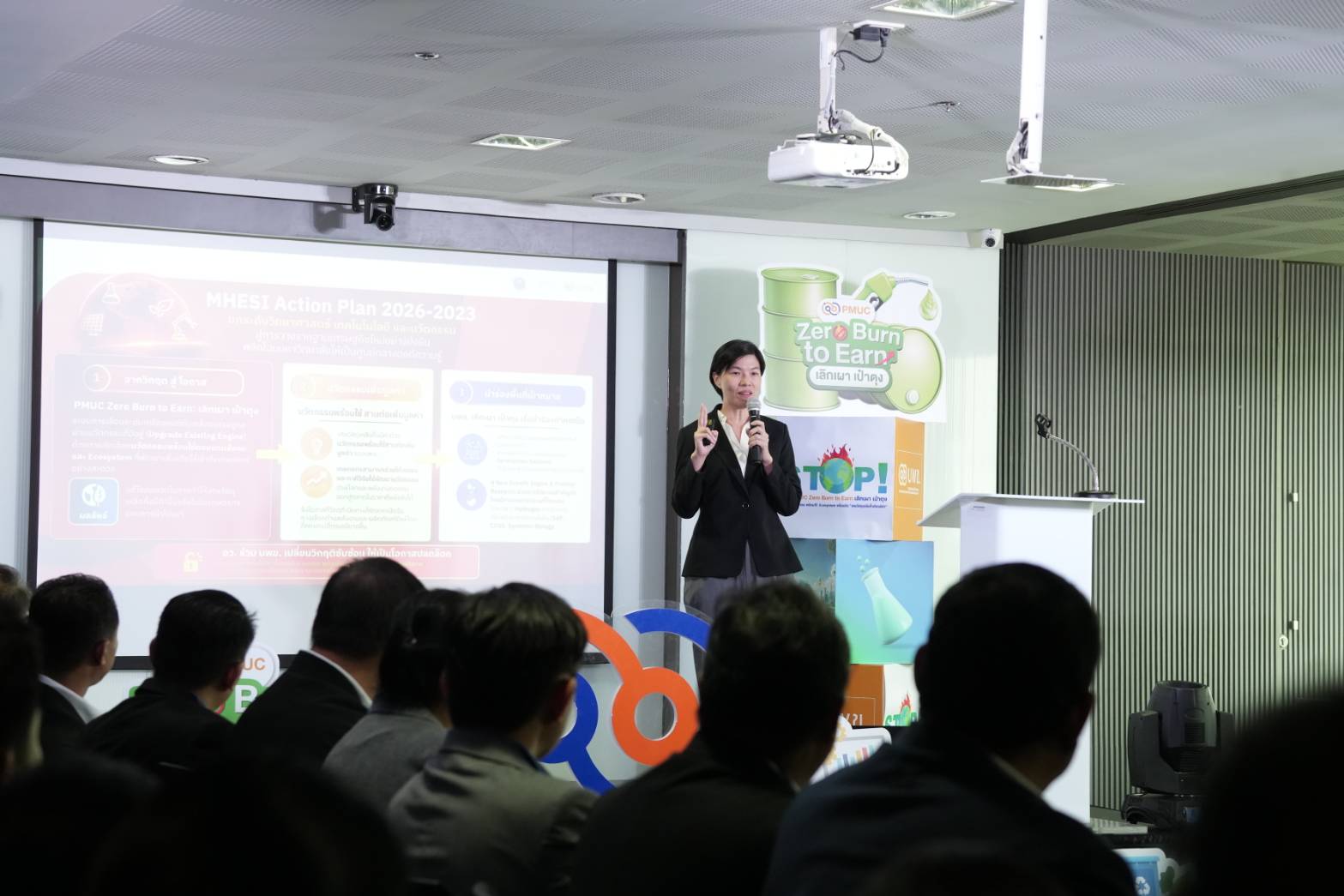 ท่ามกลางวิกฤตพลังงาน วิกฤต PM 2.5 และวิกฤตปากท้องที่สะสมและกดทับสังคมไทย กระทรวงการอุดมศึกษา วิทยาศาสตร์ วิจัยและนวัตกรรม (อว.) ร่วมกับ หน่วยบริหารจัดการทุนด้านการเพิ่มความสามารถการแข่งขัน (บพข.) สำนักงานเร่งรัดการวิจัยและนวัตกรรมเพื่อเพิ่มความสามารถการแข่งขันและการพัฒนาพื้นที่ (องค์การมหาชน) ประกาศพลิกวิกฤตซ้อนวิกฤตให้เป็นโอกาสทางเศรษฐกิจครั้งใหญ่ ผ่านงาน “PMUC Zero Burn to Earn: เลิกเผา เป๋าตุง” มุ่งเป้าเปลี่ยน “เศษวัสดุเหลือทิ้ง” ที่เคยเป็นต้นตอของมลพิษจากการเผาทำลาย ให้กลายเป็นวัตถุดิบตั้งต้นที่มีมูลค่า พร้อมส่งต่อสู่นวัตกรรมพลังงานทดแทนที่พร้อมใช้งานจริง โดยนำร่องรุกพื้นที่ภาคเหนือเป็นแห่งแรก เพื่อวางรากฐานนวัตกรรมรักษ์โลกให้เป็นเครื่องยนต์ขับเคลื่อนเศรษฐกิจใหม่ (New Growth Engine) ของประเทศอย่างเป็นระบบ
