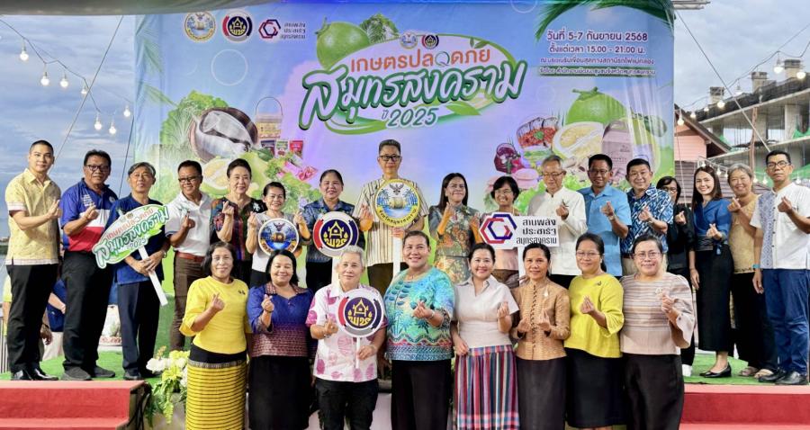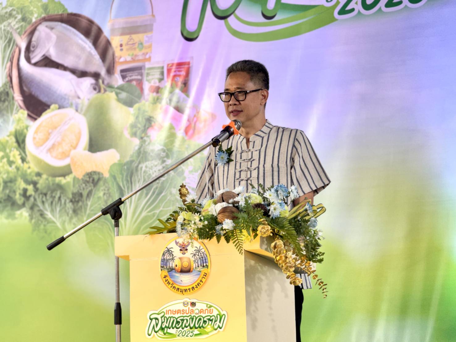 ณ บริเวณริมเขื่อนสุดทางสถานีรถไฟแม่กลอง จังหวัดสมุทรสงคราม โดยสำนักงานพัฒนาชุมชนจังหวัดสมุทรสงคราม เปิดตัวงานแสดงและจำหน่ายสินค้า “เกษตรปลอดภัย ปี 2025”ตามโครงการเสริมสร้างรายได้ด้วยเครือข่ายเกษตรปลอดภัย กิจกรรมย่อยที่ 3 ส่งเสริมช่องทางการตลาดเครือข่ายเกษตรปลอดภัย โดยมี นายรนัสถ์ชัย พุ่มเจริญ รองผู้ว่าราชการจังหวัดสมุทรสงคราม เป็นประธานในพิธีเปิดงาน พร้อมด้วยหน่วยงานภาครัฐ ภาคเอกชน สื่อมวลชย และประชาชนผู้สนใจเข้าร่วมงาน
