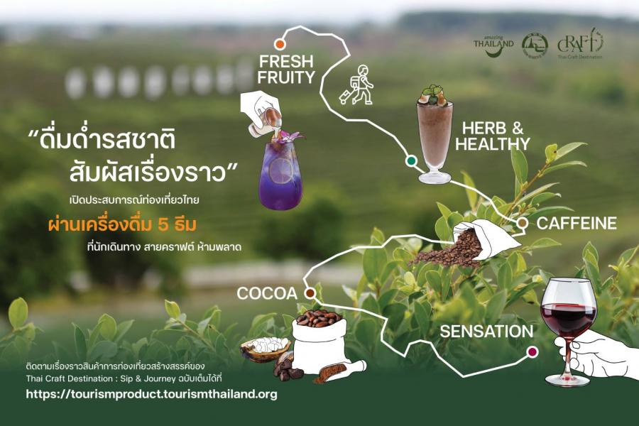 การท่องเที่ยวแห่งประเทศไทย (ททท.) สร้างสรรค์โครงการ ”Thai Craft Destination: Sip & Journey” มุ่งส่งเสริมการท่องเที่ยวเชิงสร้างสรรค์เชิงลึก และยั่งยืน โดยเน้นผลิตภัณฑ์และประสบการณ์จากชุมชน ภายใต้แนวคิด ”ดื่มด่ำรสชาติ สัมผัสเรื่องราว” ผ่านเครื่องดื่ม 5 ธีม ที่นักเดินทางสายคราฟต์ไม่ควรพลาด ได้แก่ Fresh Fruity Herb & Healthy Caffeine Cocoa และ Sensation อันสะท้อนถึงวัตถุดิบและเรื่องราวท้องถิ่น พร้อมสร้างประสบการณ์และความรู้จากการท่องเที่ยว โดยสนับสนุนสินค้าและภูมิปัญญาท้องถิ่น โดยเฉพาะเส้นทางเกี่ยวกับเครื่องดื่ม (Craft Drink) ที่มีภูมิปัญญาท้องถิ่น เพื่อส่งเสริมการท่องเที่ยวอย่างยั่งยืน ยกระดับผลิตภัณฑ์และสินค้าเกษตรท้องถิ่น กระจายรายได้สู่ชุมชน และสร้างประสบการณ์การเรียนรู้ที่มีความหมายให้กับนักท่องเที่ยวผ่านการลงมือปฏิบัติจริง (Hands-on Experience)