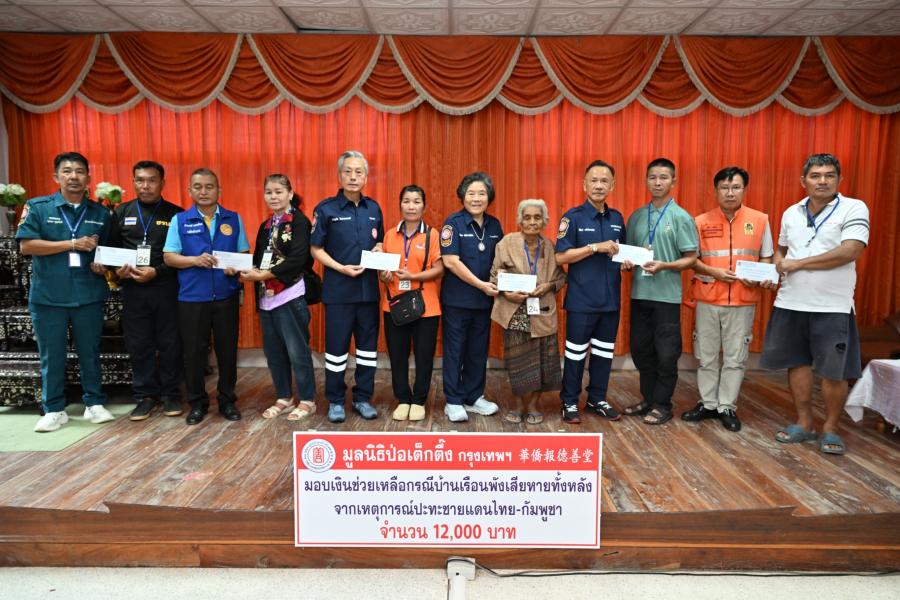 มูลนิธิป่อเต็กตึ๊ง จัดงบฯ กว่า 4.6 แสนบาท ลงพื้นที่จังหวัดอุบลราชธานี ศรีสะเกษ และสุรินทร์ มอบเงินช่วยเหลือกรณีบ้านพังเสียหายทั้งหลังจากเหตุการณ์ปะทะชายแดนไทย-กัมพูชา