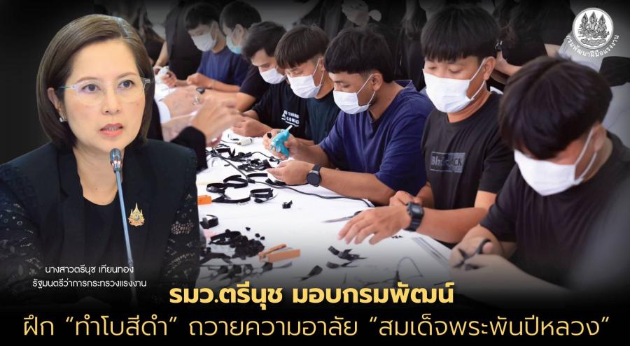 นางสาวตรีนุช เทียนทอง รัฐมนตรีว่าการกระทรวงแรงงาน มอบกรมพัฒนาฝีมือแรงงาน เปิดฝึกอบรม “ สอนทำโบสีดำ” เพื่อแสดงความจงรักภักดีและถวายความอาลัยแด่สมเด็จพระนางเจ้าสิริกิต์ พระบรมราชินีนาถ พระบรมราชชนนีพันปีหลวง สร้างอาชีพ และนำแจกจ่ายให้แก่ประชาชนนำไปติดเสื้อ