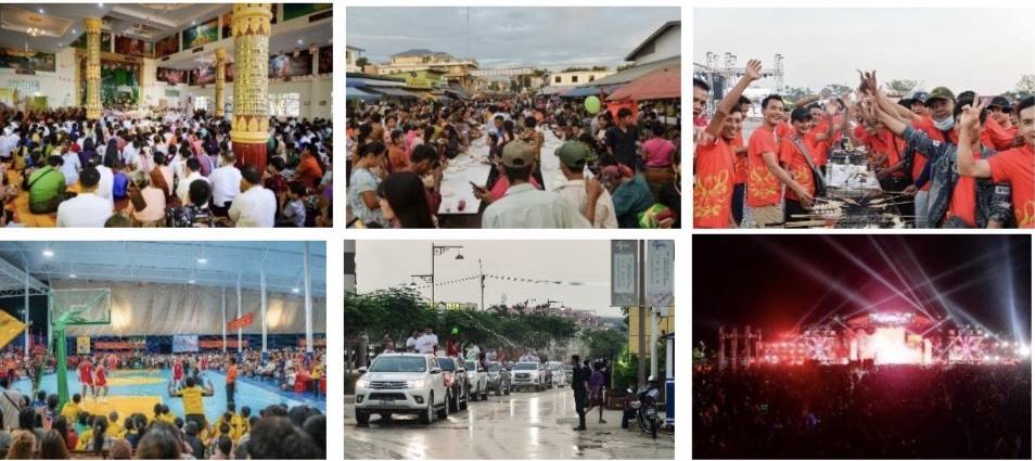 ภาพซ้าย: ปีพ.ศ. 2566 บริจาคเงิน 1600 ล้านจ๊าดเมียนมาร์ช่วยเหลือการสร้างบ้านให้กับผู้ประสบภัย