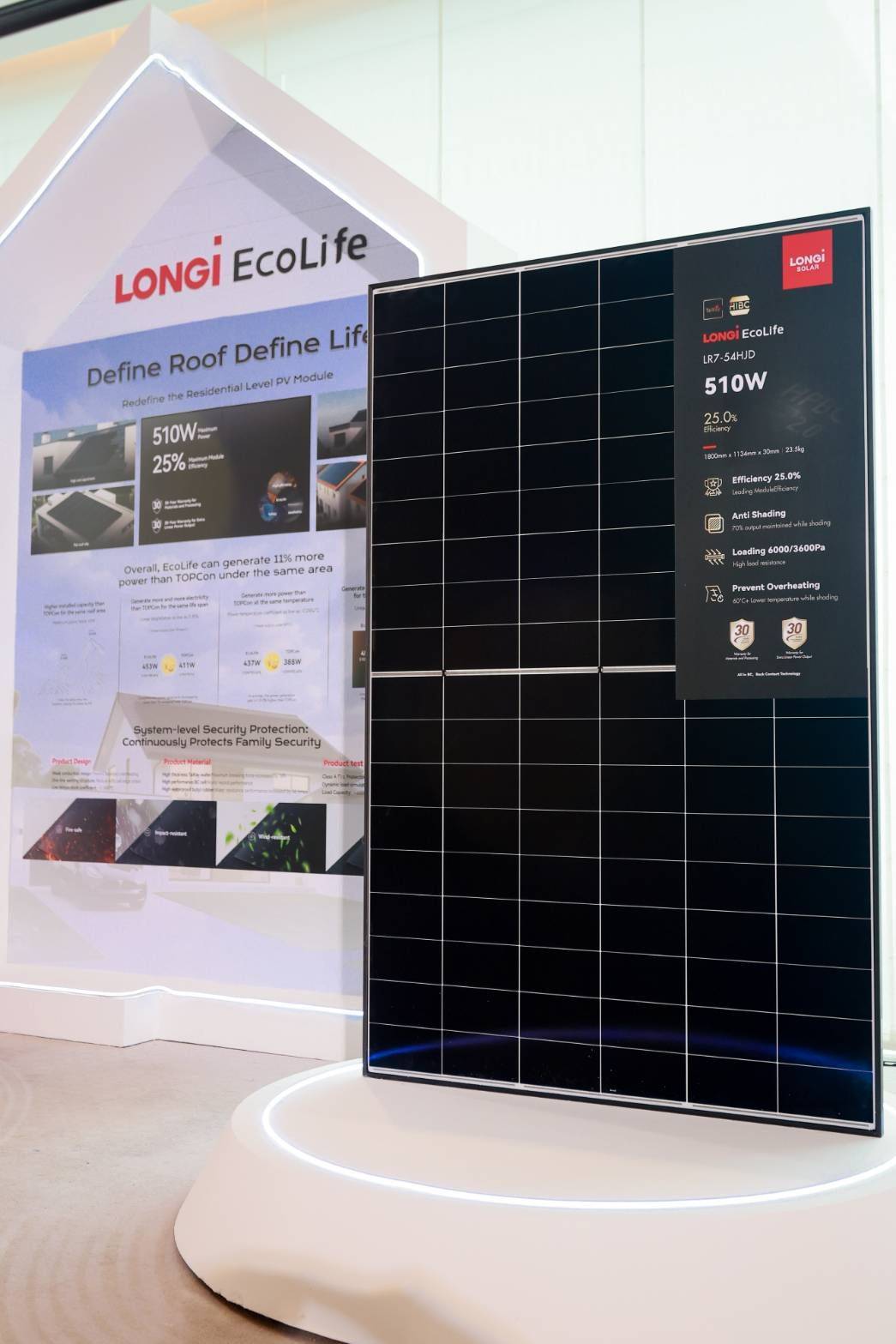 และสุดท้ายกับตลาดพลังงานแสงอาทิตย์ระดับที่อยู่อาศัย (Residential Solar) ในยุคที่ผู้คนให้ความสำคัญกับพลังงานสะอาด ความคุ้มค่า และดีไซน์ที่เข้ากับบ้านสมัยใหม่ LONGi ได้ออกแบบนวัตกรรมที่รวมทั้งประสิทธิภาพ ความงามและความเข้ากับวิถีชีวิต เข้าไว้ด้วยกันอย่างลงตัว โซลูชันนั้นก็คือ LONGi EcoLife Series – Redefine the Residential Level PV Module ซีรีส์ที่ถูกสร้างขึ้นเพื่อยกระดับมาตรฐาน ของโมดูลโซลาร์เซลล์สำหรับที่อยู่อาศัยอย่างแท้จริง ด้วยเทคโนโลยีที่ไม่เพียงให้พลังงานสูงขึ้น แต่ยังกลมกลืนกับสถาปัตยกรรมของบ้านในทุกสไตล์สวยงาม ทนทาน ปลอดภัย และตอบโจทย์ครัวเรือนยุคใหม่ที่ต้องการพลังงานอัจฉริยะและคุ้มค่าที่สุด