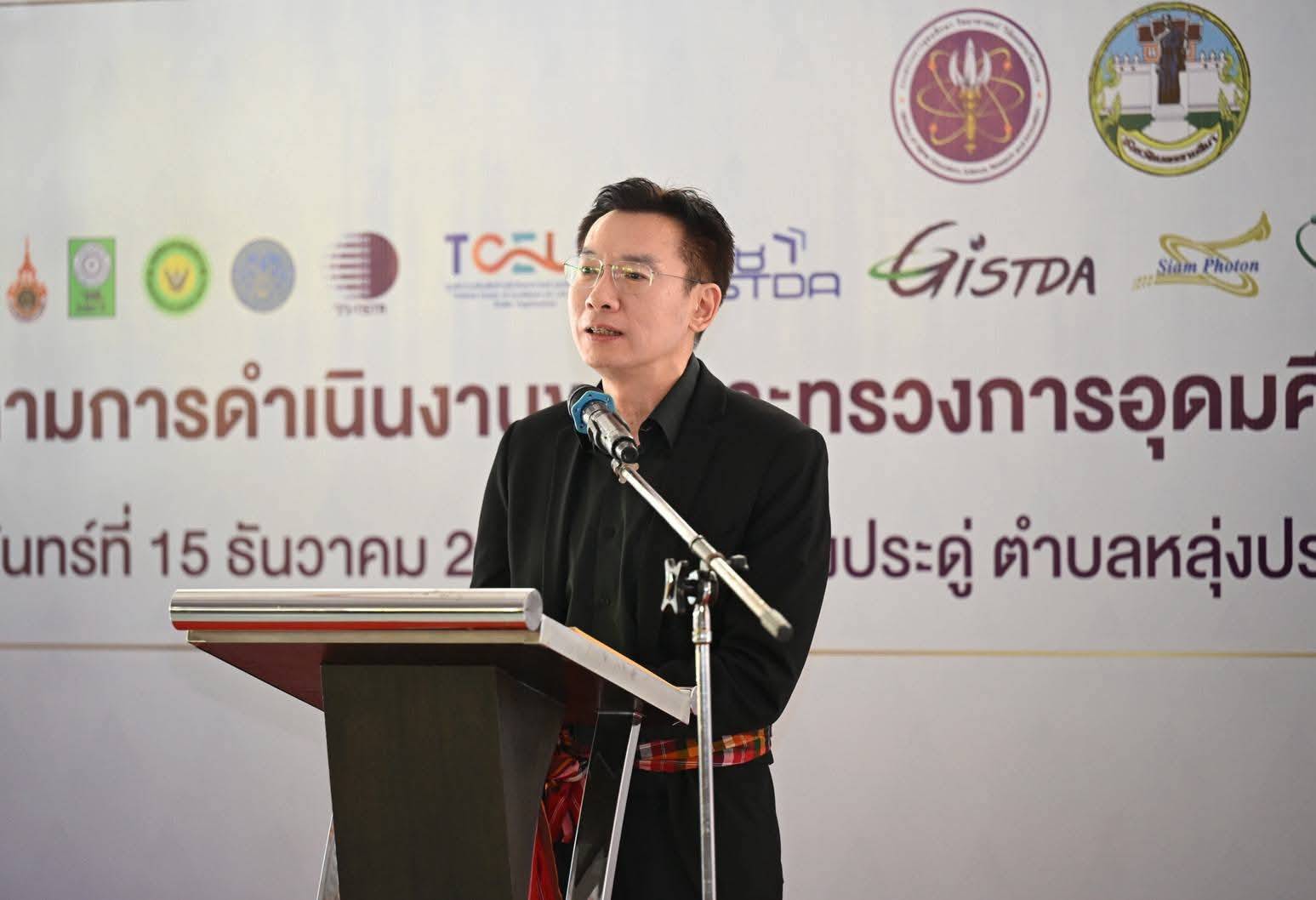 ศ.ดร.ศุภชัย ปทุมนากุล ปลัดกระทรวงการอุดมศึกษา วิทยาศาสตร์ วิจัยและนวัตกรรม กล่าวว่า จังหวัดนครราชสีมาเป็นพื้นที่ยุทธศาสตร์สำคัญของประเทศ มีศักยภาพโดดเด่นด้านประวัติศาสตร์ เศรษฐกิจ สังคม และวัฒนธรรม เป็น “ประตูสู่ภาคอีสาน” ที่พร้อมต่อยอดการพัฒนาอย่างยั่งยืน กระทรวง อว. ได้ขับเคลื่อนนโยบาย Quick Win ภายใน 2 เดือน ครอบคลุม 5 ด้านหลัก มุ่งเน้นการนำองค์ความรู้ เทคโนโลยี และนวัตกรรมไปใช้ประโยชน์ในระดับชุมชน เพื่อยกระดับคุณภาพชีวิต ลดต้นทุน เพิ่มรายได้ และเสริมสร้างความเข้มแข็งให้กับเศรษฐกิจฐานรากควบคู่ไปกับการพัฒนา